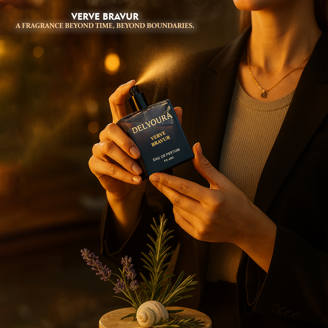Dive into the invigorating spirit of the sea with Verve Bravur, an everyday marine fragrance from Delvoura’s Verve Series crafted for men who thrive on freshness. The scent opens with the crisp, salty allure of sea breeze and the zesty spark of lemon, awakening your senses instantly. A heart of lavender and rosemary adds aromatic depth, evoking the calm yet powerful energy of coastal winds. Finally, driftwood and musk anchor the composition with smooth, grounding warmth.