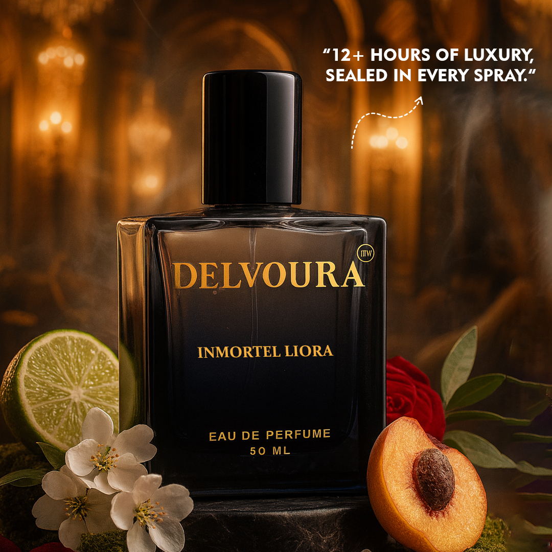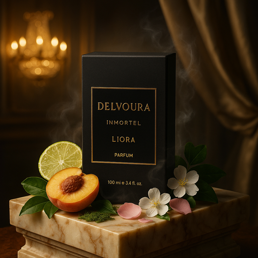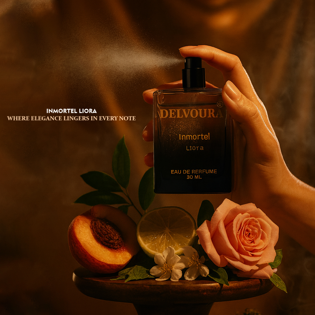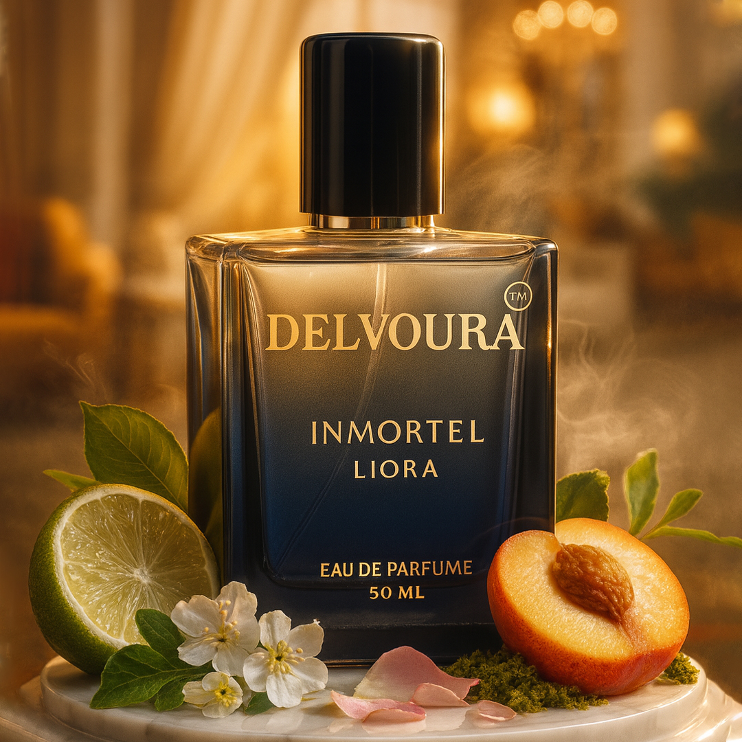 Experience the sophistication of Inmortel Liora, a luxury women’s perfume from Delvoura’s Inmortel Series. The fragrance opens with the sparkling freshness of bergamot and the soft sweetness of peach, leading into a heart of rose and jasmine that exudes feminine grace. As it settles, the rich earthiness of oakmoss blends seamlessly with patchouli, creating a grounded, enduring elegance that lingers beautifully.