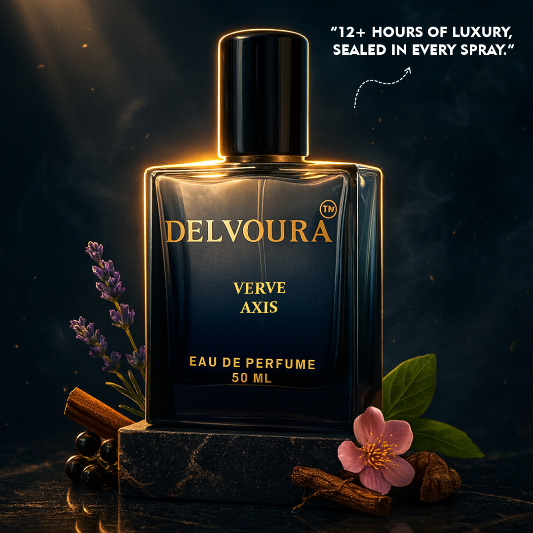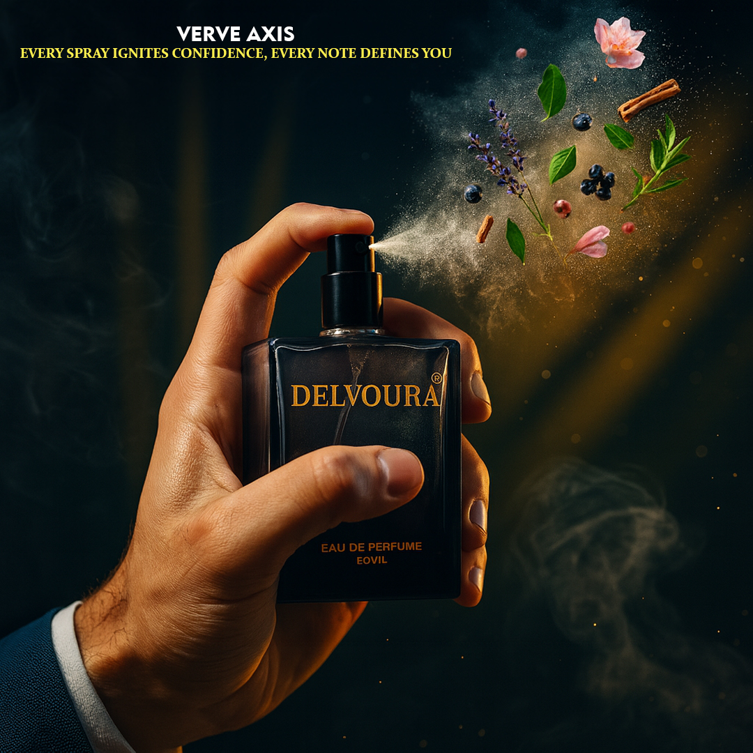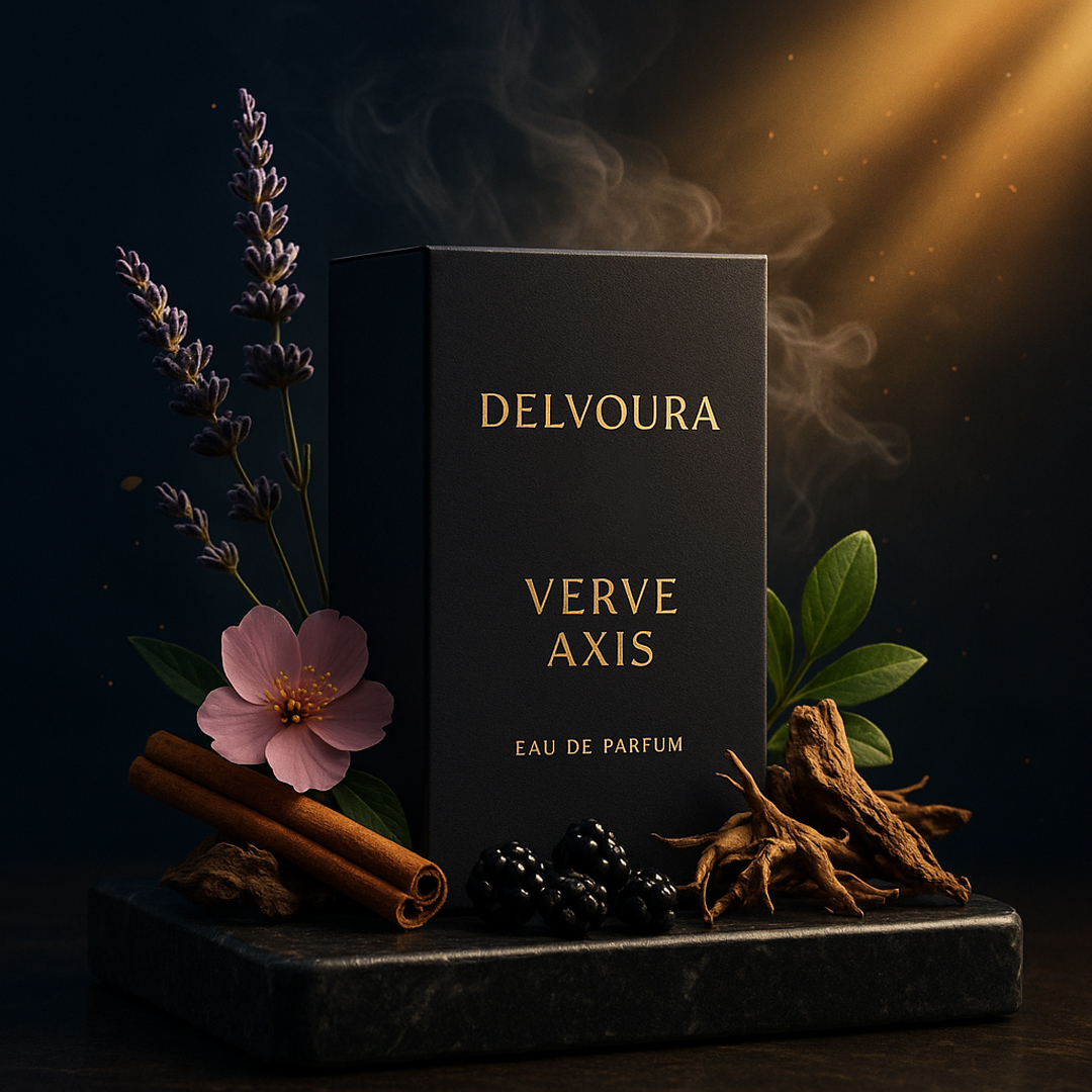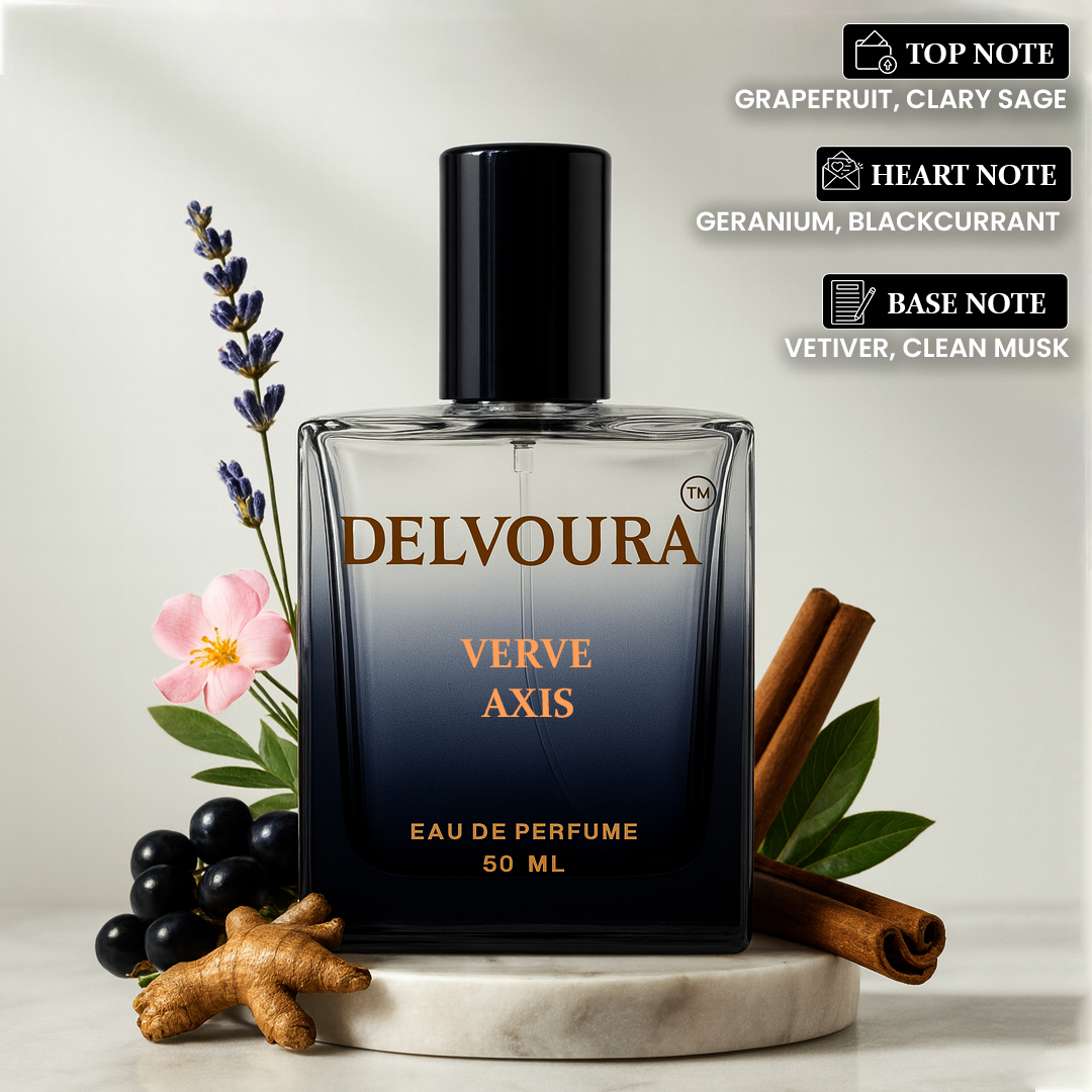 Verve Axis from Delvoura’s Verve & Infini collections is designed for individuals who value poise and precision in every setting. The scent opens with the vibrant sparkle of grapefruit and the crisp herbal touch of clary sage, instantly awakening the senses. A heart of geranium and blackcurrant adds depth and sophistication, while the base of vetiver and clean musk provides a smooth, elegant finish.