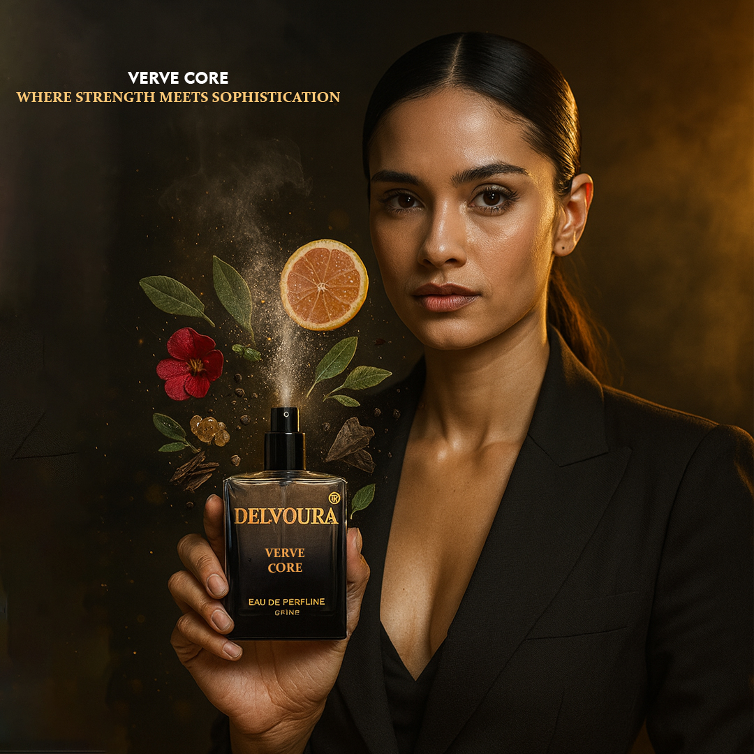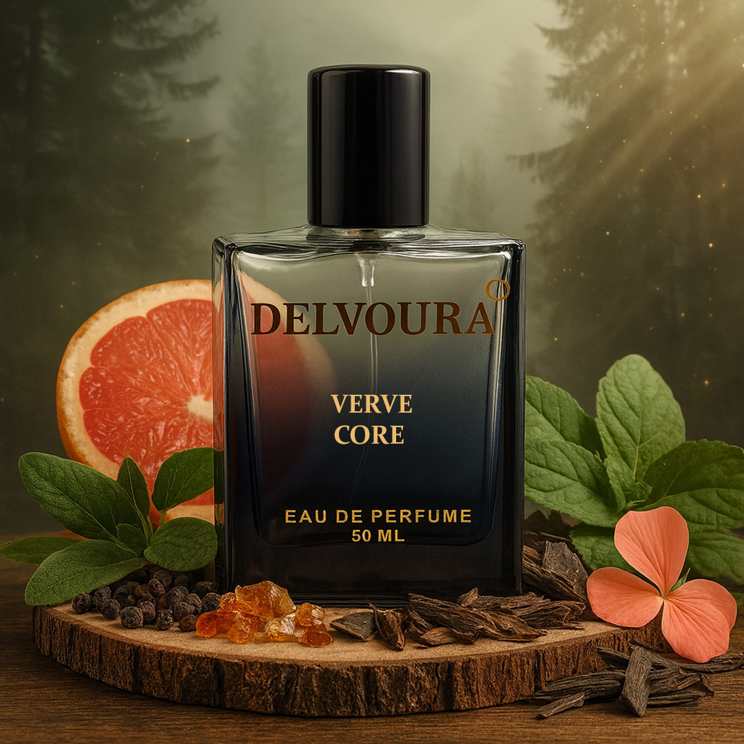 Verve Core from Delvoura’s Verve & Inmortel collections is designed for those who value depth and sophistication in every moment. It opens with the assertive spice of pepper and the zesty brightness of grapefruit, striking a perfect balance between vibrance and strength. The heart brings together aromatic geranium and sage, adding a fresh yet herbal character. Finally, a warm base of amber, oud, and patchouli delivers an enduring richness that feels both timeless and modern.