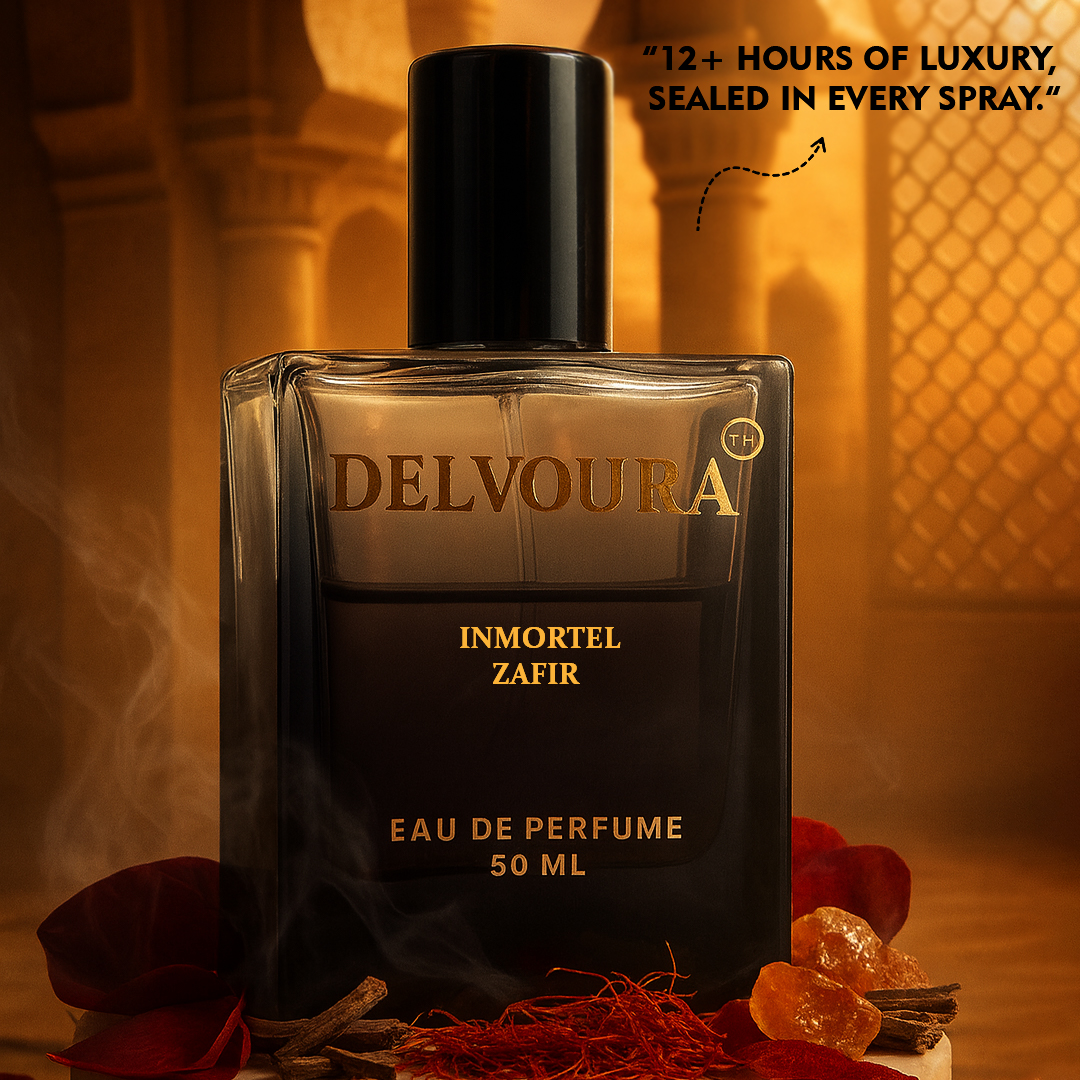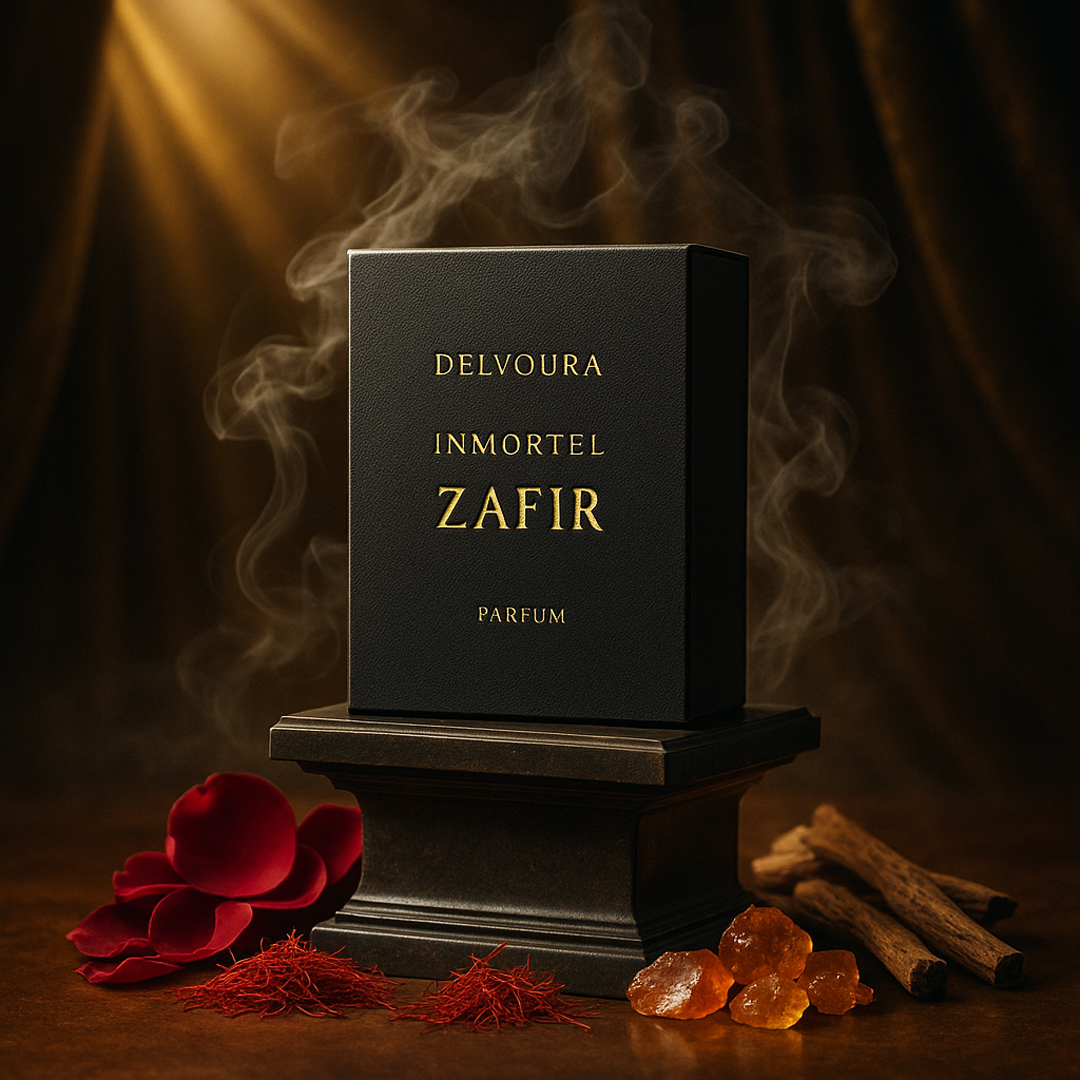 Inmortel Zafir from Delvoura’s Inmortel Series is a tribute to classic oriental elegance. Opening with the golden warmth of saffron and the romantic depth of rose, it unfolds into a heart of smooth vanilla enriched with smoky incense. The base of oud and amber delivers a rich, resinous finish that lingers with regal sophistication.